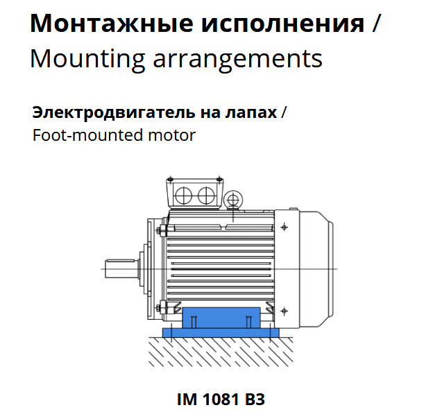 - Направление вращения вала: правое или левое по заказу