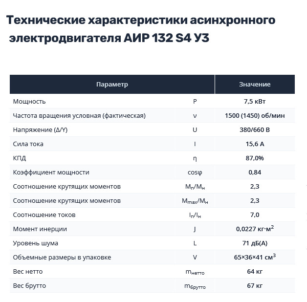 - Мощность электродвигателя: 7,5 кВт